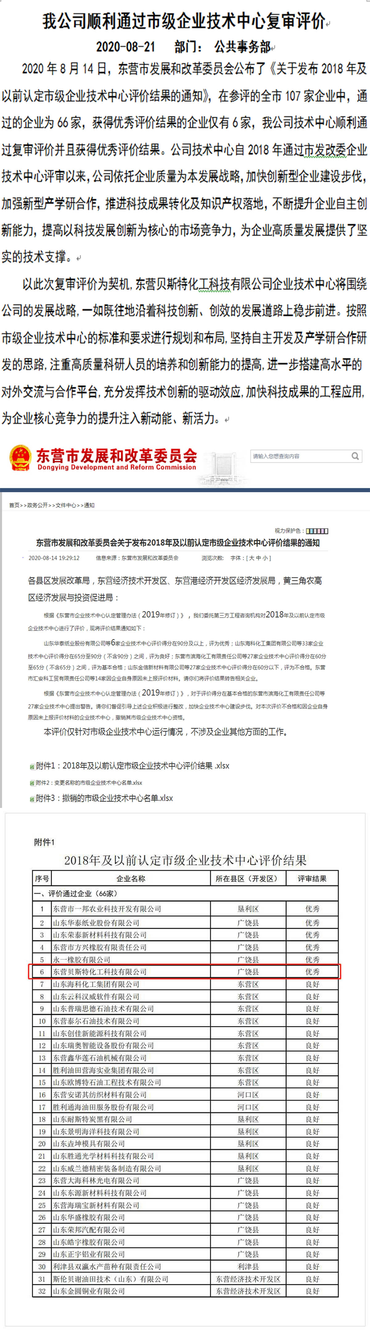 2025年12月21日,東營(yíng)市發展和改革委(wěi)員會公布了《關于(yu)發布2018年及以㊙️前認(ren)定市級企業技術(shu)中心評價結果的(de)通知》,我公司技術(shu)中心順利通過複(fu)審…