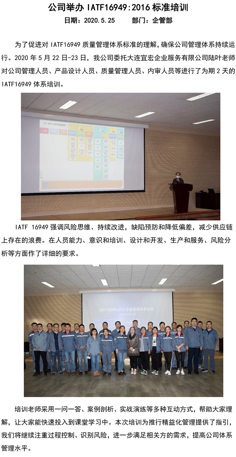 公司(si)舉辦IATF16949:2016标(biāo)準培訓(xun)