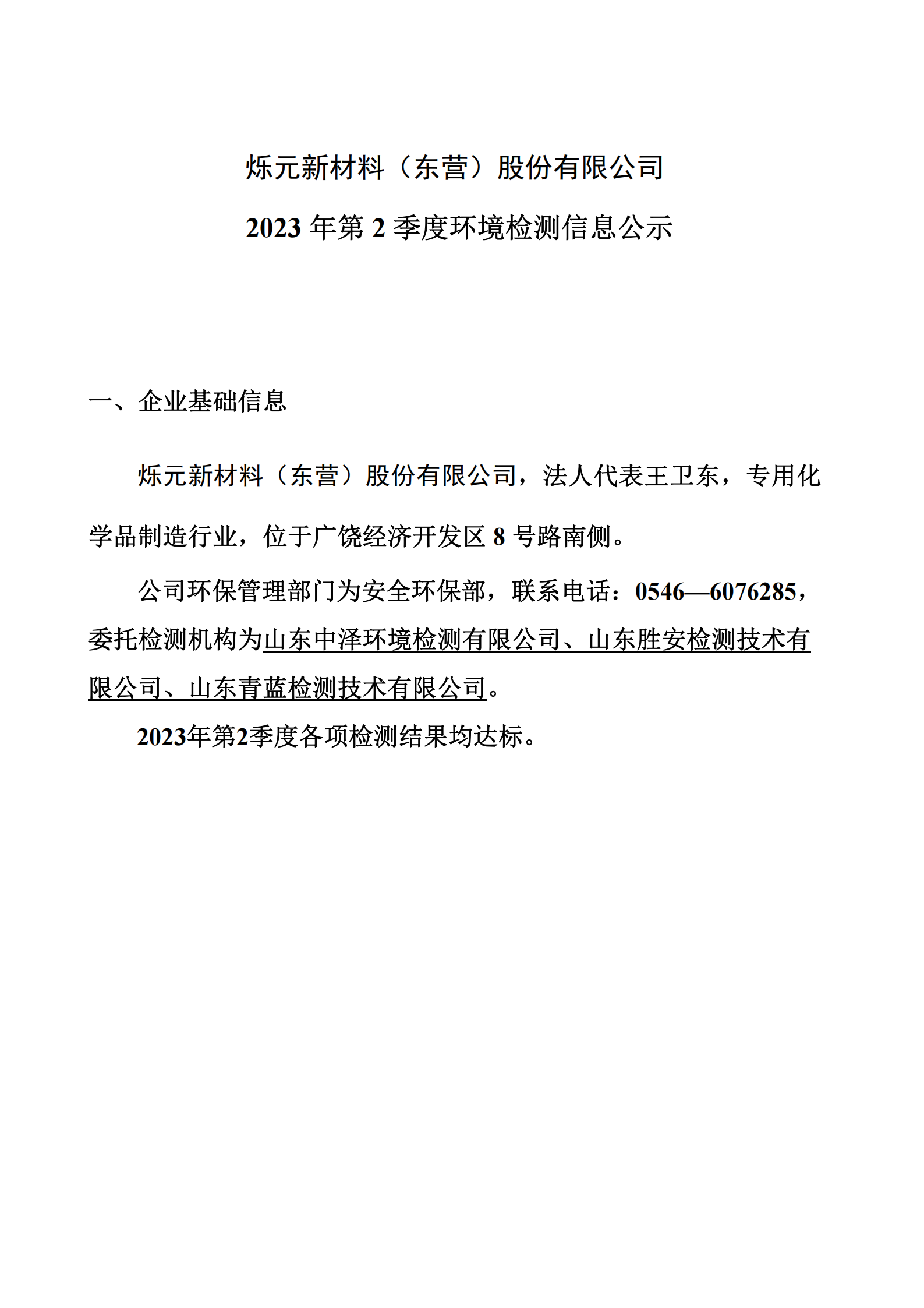 2023年第(dì)2季度環境檢測(cè)信息公示
