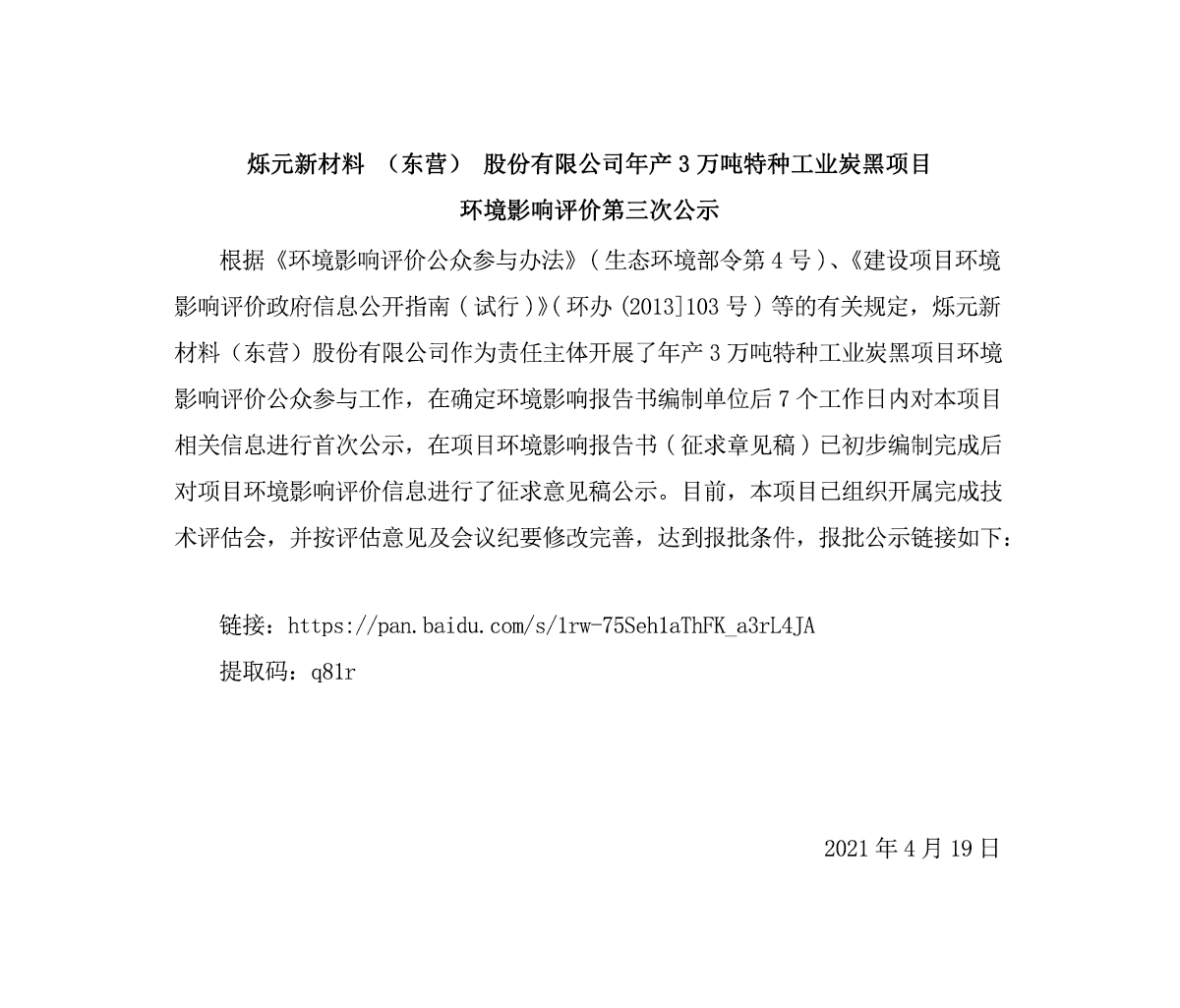 公司(si)年産3萬噸(dūn)特種工業(yè)炭黑項目(mu) 環境影響(xiǎng)評價🏃♂️第💃🏻三(san)次公示