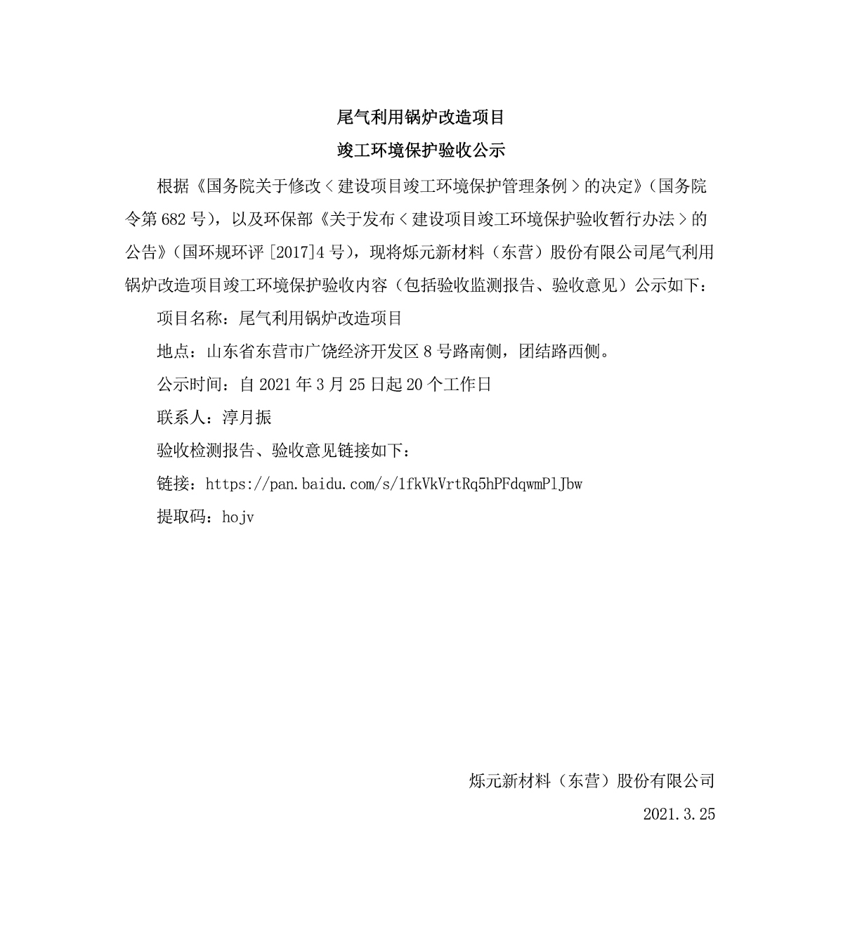 尾氣(qi)利用鍋(guo)爐改造(zao)項目竣(jun4)工環境(jing)保護驗(yàn)收公示(shì)